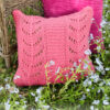 Prjónað púðaver með köðlum. Stykkið er prjónað úr Drops Big Merino.