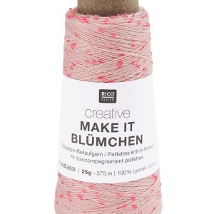 Make it Blümchen er glitrandi garn skreytt með fíngerðum blómalöguðum pallíettum. Skemmtilegt garn til að nota sem fylgiþráð með öðru garntegundum.