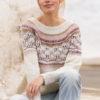 Prjónuð peysa með norrænu mynstri úr DROPS Sky. Stykkið er prjónað ofan frá og niður með hringlaga berustykki.