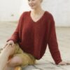 Prjónuð peysa með v-hálsmáli úr Drops Air. Stykkið er prjónað með gatamynstri.