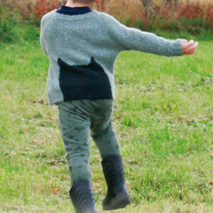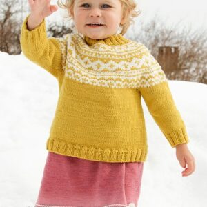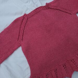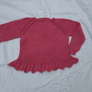 Falleg peysa, tilvalin með leggings. Peysan er prjónuð ofan frá og niður. Þegar berustykki líkur eru ermalykkjur settar á þráð og bolur prjónaður áfram í hring. Laufblaðakantur neðst á bol.