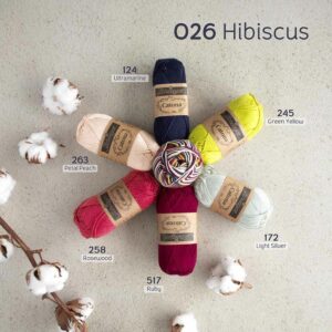 Hibiscus er samsett úr litum nr: 517, 258, 263, 124, 245, 172 í Catona