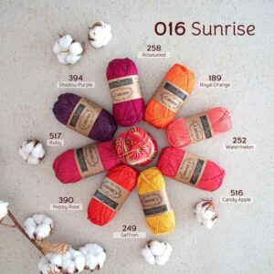 Sunrise er samsett úr litum nr: 394, 517, 516, 252, 249, 189, 390, 258 í Catona