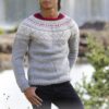 Prjónuð peysa fyrir herra með köðlum. Stykkið er prjónað úr Drops Merino Extra Fine eða Karisma.