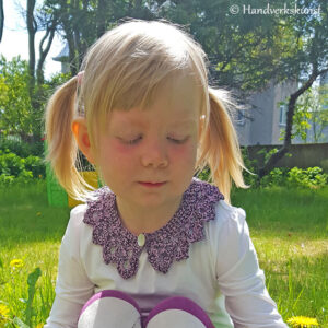 Aþena systurdóttir mín er 3ja ára skvísa sem hefur gaman af því að klæða sig upp og vera fín. Nú er sumar og nýtur Aþena þess að geta verið í kjól og þurfa ekki að fela glingur og skart undir peysu eða jakka. Bleikur er uppáhalds liturinn hennar Aþenu og vakti bleiki kraginn sem ég heklaði handa henni mikla lukku.