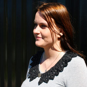 Heklaður kragi með tölu. Einfalt og fljótgert verkefni.