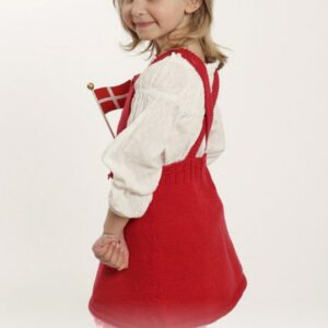 Prjónað pils með gatamynstri á smekk og slaufa í hárið með garðaprjóni úr Drops Cotton Merino.
