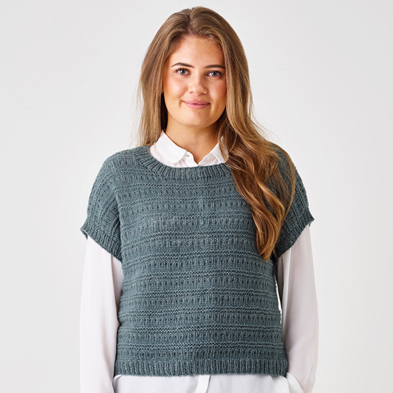 Strikkefasthed: 17,5 m x 25 p = 10 x 10 cm i mønster på p 5 mm med 2 tråde Hannah, eller den p der giver strikkefastheden. Det er vigtigt at overholde strikkefastheden for at opnå det rigtige resultat. Laf altid en strikkeprøve inden arbejdet påbegyndes, og gå eventuelt en pindstørrelse op eller ned, så strikkefastheden kommer til at passe.