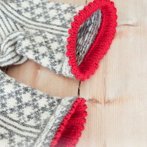 Prjónfesta: 23 lykkjur x 32 umferðir með sléttu prjóni = 10×10 cm.