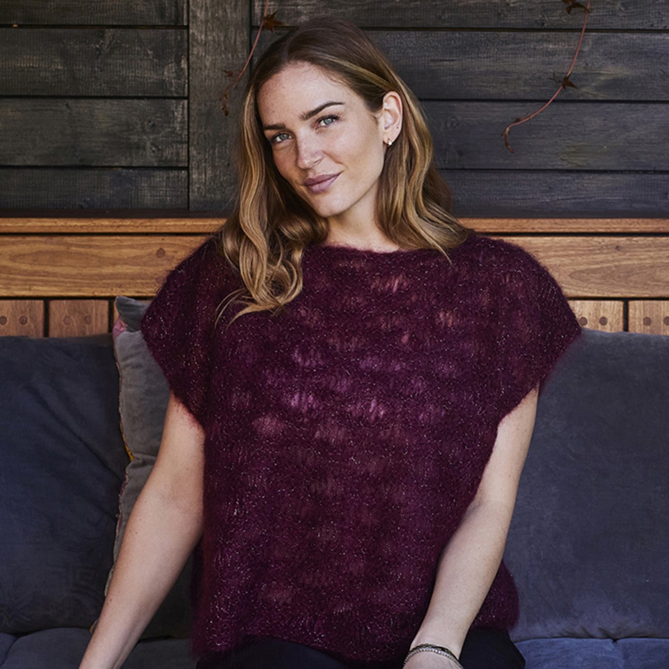 Strikkefasthed: 12 m bølgemønster i bredden = 10 cm på p 7 mm, eller den p der giver strikkefastheden.