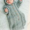 Prjónaður heilgalli fyrir börn úr Drops Merino Extra Fine. Stykkið er prjónað með áferðamynstri og hettu.