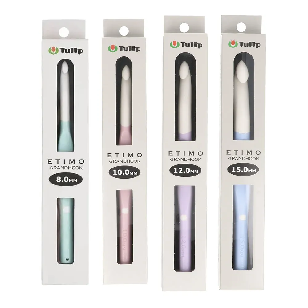 Etimo Jumbo heklunálar frá Tulip eru frábærar að vinna með þegar heklað er úr grófu garni. Nálarnar eru þægilegar að vinna með, langt skaftið er mjúkt viðkomu sem tryggir að þú getur heklað lengi án þess að finna fyrir þreytu í höndunum. Oddurinn á nálinni er oddhvass.