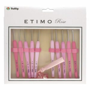 The Tulip Etimo Rose Lace crochet hooks set is a true hit with crocheters. Tulip offers a wide range of superior quality products. This set contains 10 crochet hooks in the following sizes: 0.9mm, 1mm, 1.25mm, 1.5mm, 1.75mm, 2mm, 2.5mm, 3mm, and 3.5mm. It also contains a pair of scissors and two yarn needles. Packed in a beautiful pink case. The soft grip needles ensure hours of comfortable crocheting. Make the most beautiful projects with these hooks!