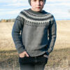Falleg peysa á minnstu börnin, Peysan er prjónuð neðan frá og upp með laskaúrtöku og mynstri á framstykki