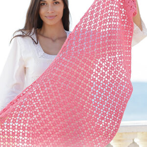 Heklað sjal með gatamynstri, heklað ofan frá og niður.