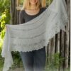 Prjónað sjal úr DROPS Fabel. Stykkið er prjónað frá hlið með röndum, dropum og blöðum.